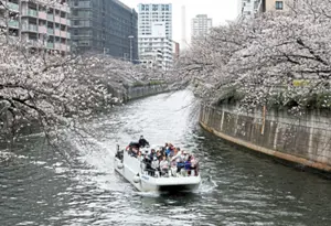 A few dozen tourists hopped onto a small cruise boat in Tokyo to admire the cherry blossoms lining the Meguro River – a seasonal attraction that could soon become costlier for passengers and operators alike.